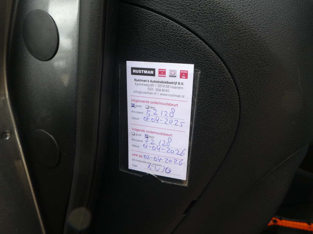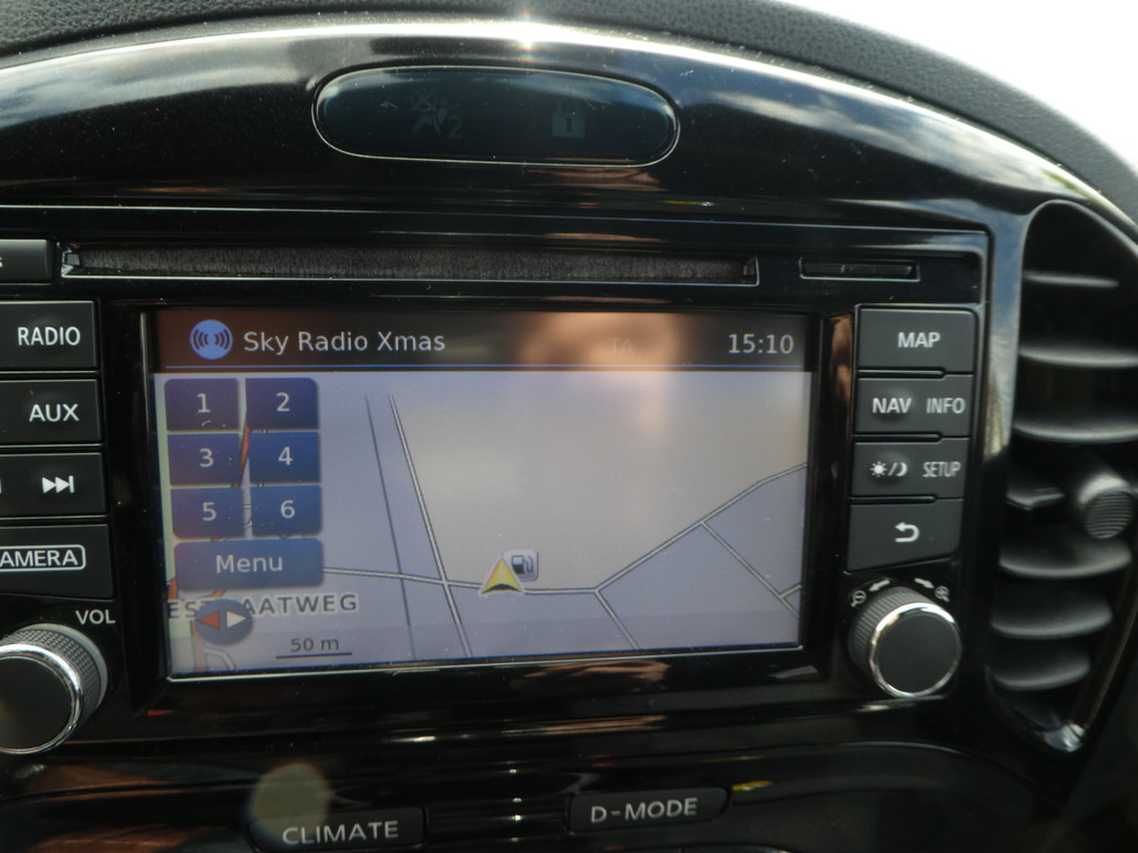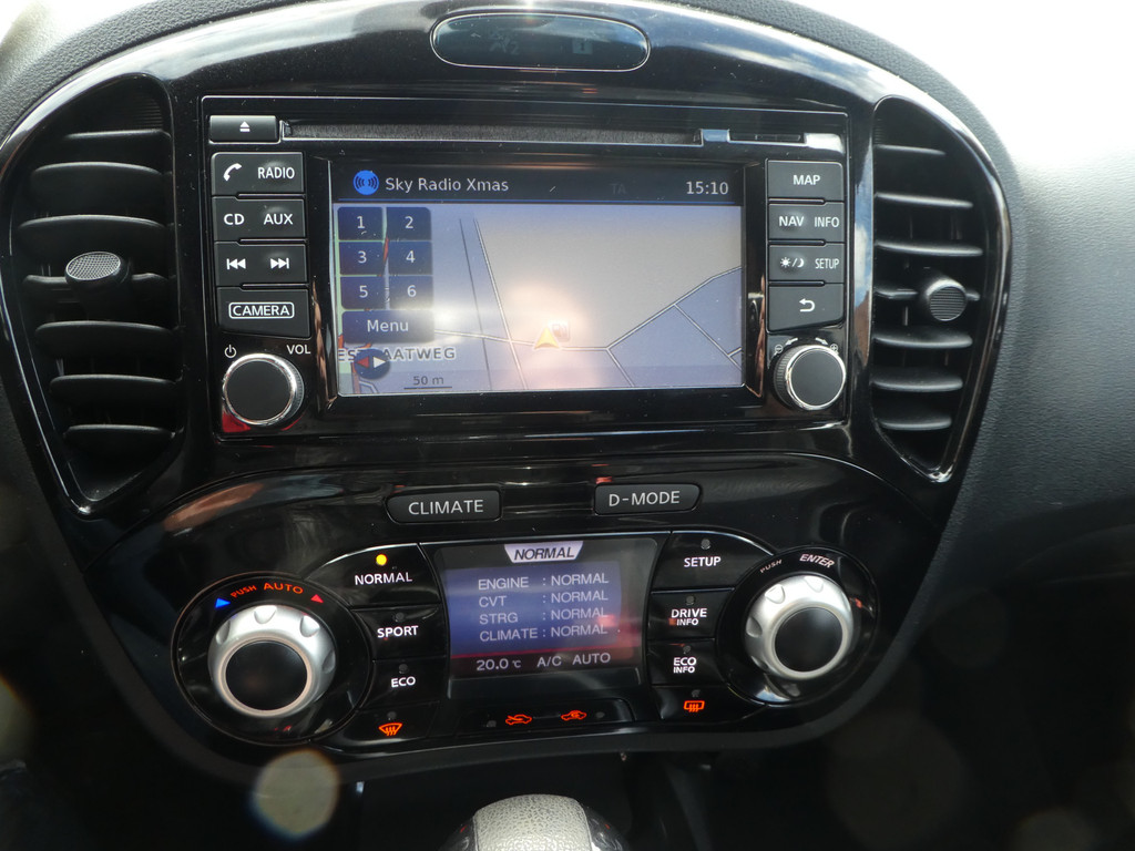 Kinderfietsje niet gezien bij het inparkeren? Dat gebeurt u nooit meer. Daar zorgt de achteruitrijcamera wel voor! U verwacht natuurlijk automatische airconditioning in deze auto, en die is er dan ook. De auto neemt u werk uit handen doordat hij zelf veel in de gaten houdt. Een regensensor en een automatisch inschakelbare verlichting nemen waar wanneer de ruitenwissers en het licht aan moeten. Met ingeschakelde cruise control zit u ontspannen achter het stuur. Komt u aanlopen, dan ontgrendelt de keyless entry gastvrij de sloten. Da's een makkelijke optie! De uitrusting van deze Nissan is met navigatiesysteem, lederen stuur, centrale deurvergrendeling met afstandsbediening en boordcomputer behoorlijk compleet.