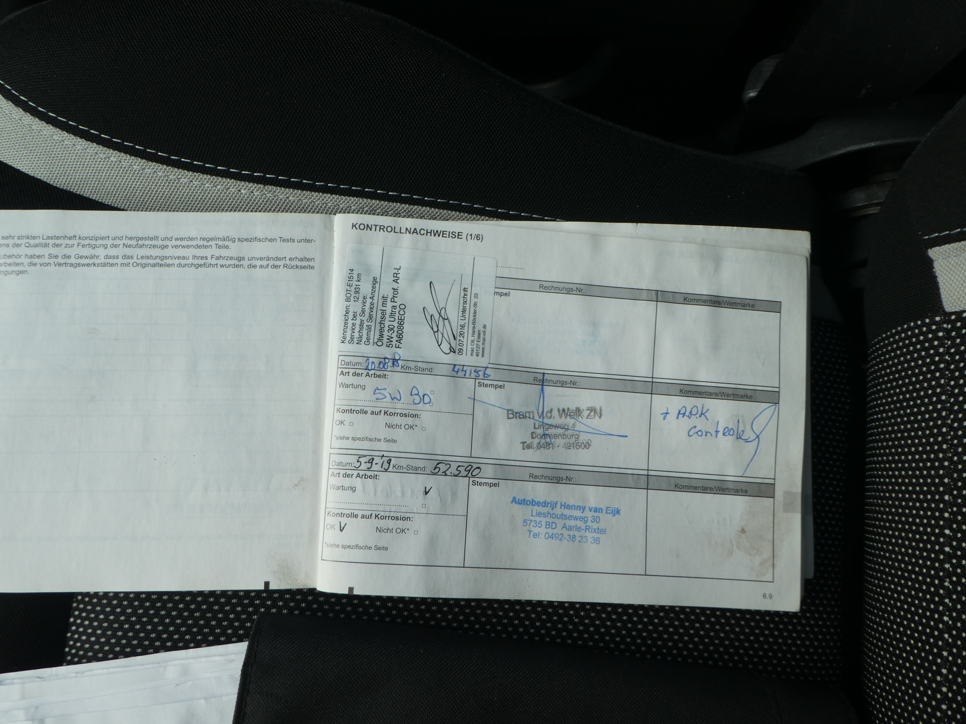 APK bij aflevering, vloeistoffen check, tenaamstelling