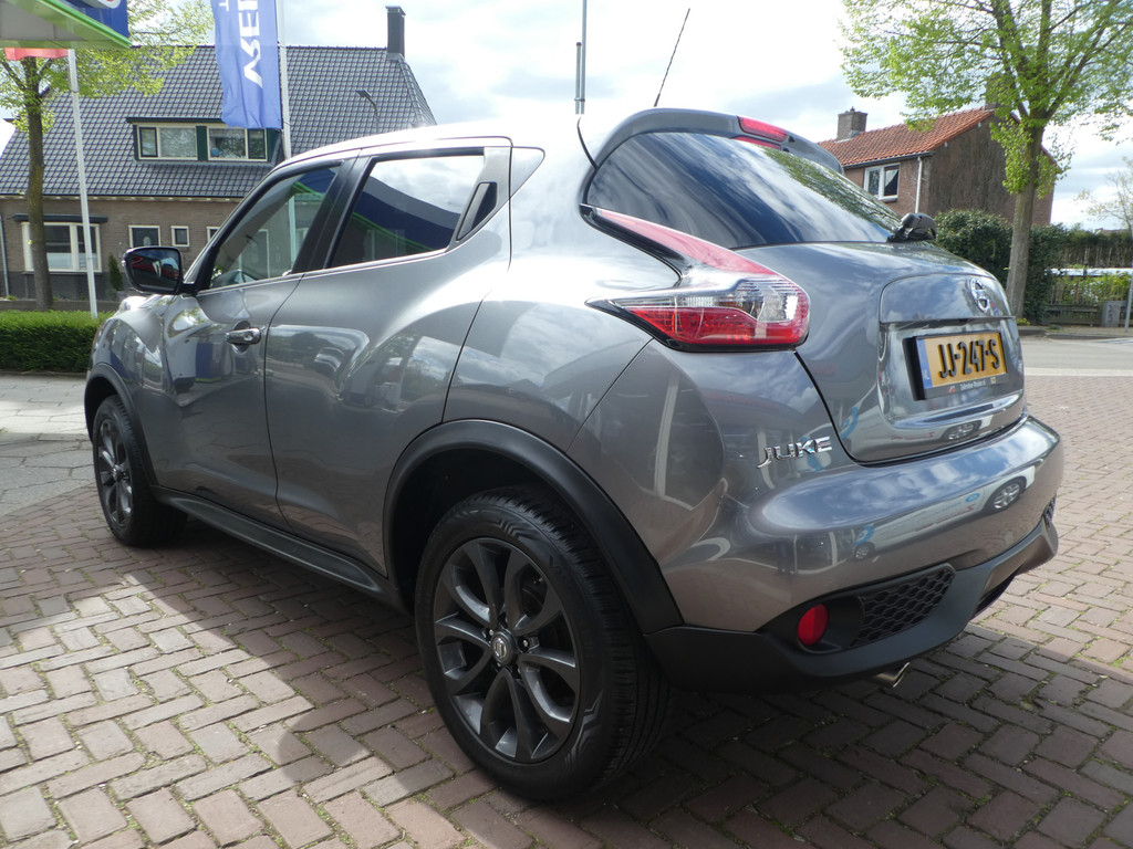 Hij is stijlvol en comfortabel, deze Nissan Juke, en hij is ontworpen om u veilig en comfortabel te laten rijden onder alle omstandigheden. Een robuuste viercilinder benzinemotor is verantwoordelijk voor de aandrijving van deze SUV. Bij de zeer complete uitrusting van deze auto behoren ook 17 inch lichtmetalen velgen, LED-dagrijverlichting, donker getint glas achter en in delen neerklapbare achterbank.