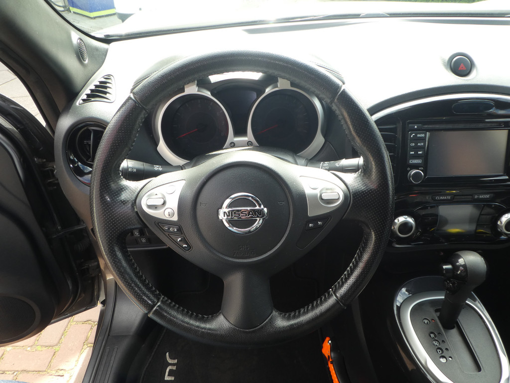 Kinderfietsje niet gezien bij het inparkeren? Dat gebeurt u nooit meer. Daar zorgt de achteruitrijcamera wel voor! U verwacht natuurlijk automatische airconditioning in deze auto, en die is er dan ook. De auto neemt u werk uit handen doordat hij zelf veel in de gaten houdt. Een regensensor en een automatisch inschakelbare verlichting nemen waar wanneer de ruitenwissers en het licht aan moeten. Met ingeschakelde cruise control zit u ontspannen achter het stuur. Komt u aanlopen, dan ontgrendelt de keyless entry gastvrij de sloten. Da's een makkelijke optie! De uitrusting van deze Nissan is met navigatiesysteem, lederen stuur, centrale deurvergrendeling met afstandsbediening en boordcomputer behoorlijk compleet.